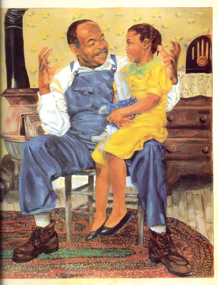 在题记里,詹姆斯将《杰德爷爷的理发店》献给美国杰出的插画家杰瑞·平克尼和他的妻子,因为在詹姆斯创作的道路上,杰瑞·平克尼不断地给他鼓励和帮助,像精神导师一样为他指明了前进的方向。