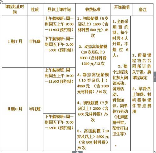 能在水中航行,能在蓝天翱翔,能自己遥控快艇和飞机,带着对从未触摸领域的好奇和探索,科技手工夏令营将实现你儿时的梦想。我们的科技手工类课程经历了2011年雏形,2013年调整,2014年全新推出的成长过程,全程DIY和便利的实操性,让梦想实现就在眼前。课程由钱老师负责指导和主讲,每个时间段最多六个学员,只接受预约制。钱老师经过近4个月新课程设计挑战,3个月的外地游学讲课旅行历程,相信这次归来会带给大家不一样风格体验。 可跨期报名,但是请在8月31日完成所报课次。会员享受会员折扣。
