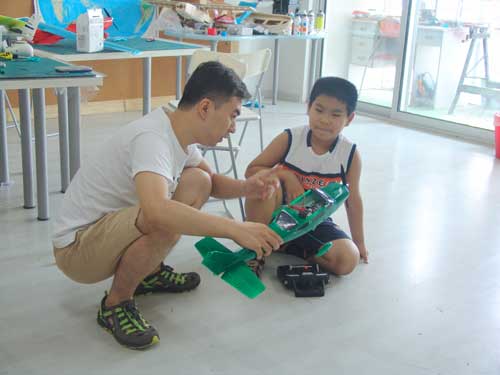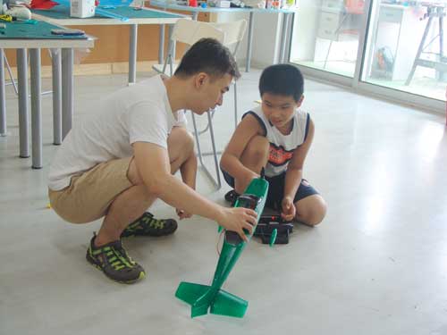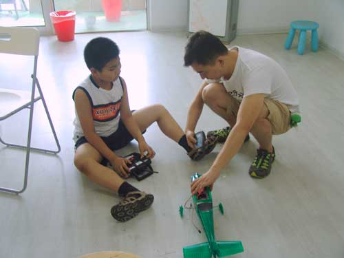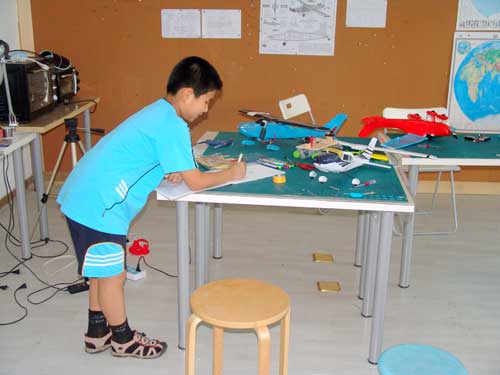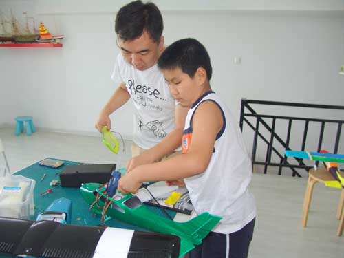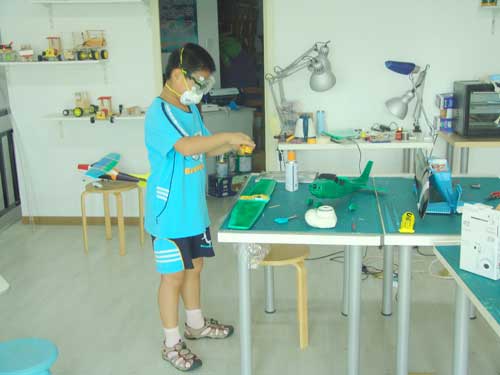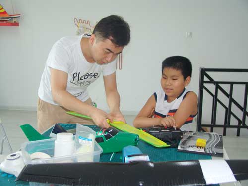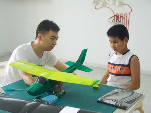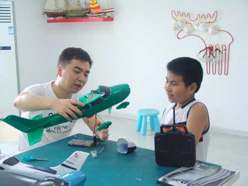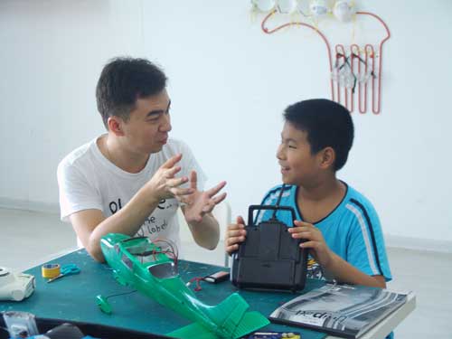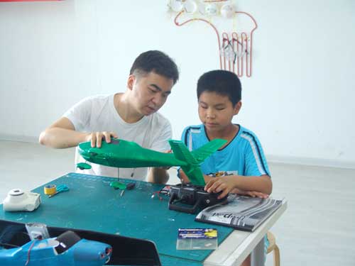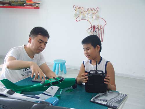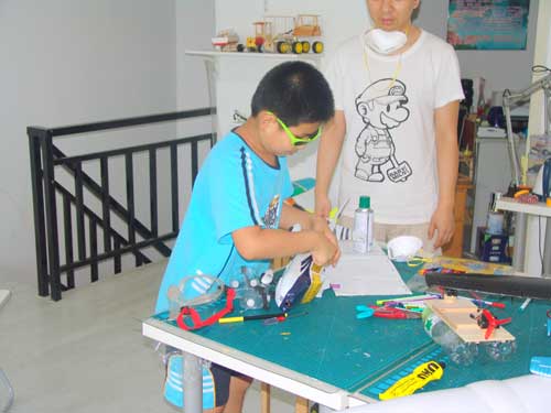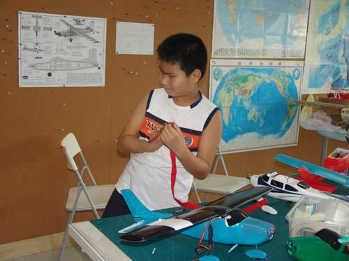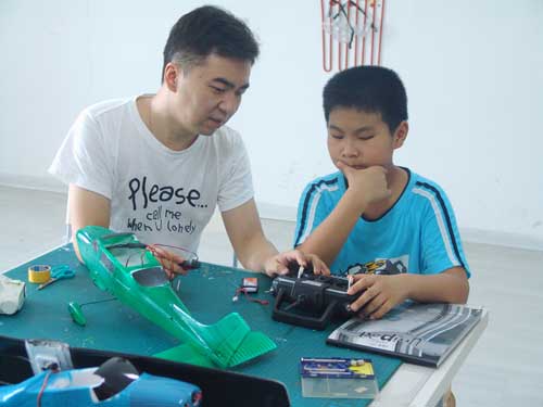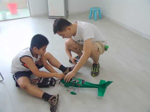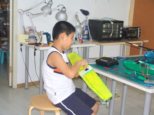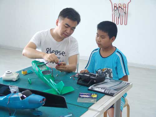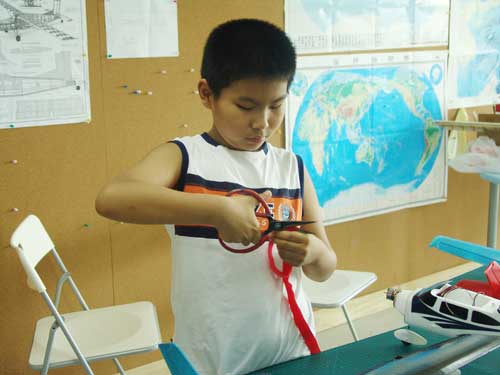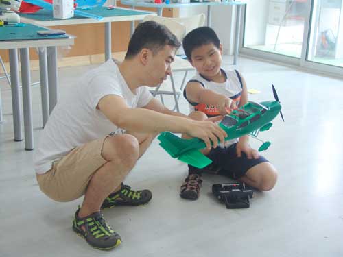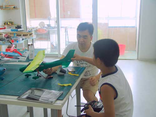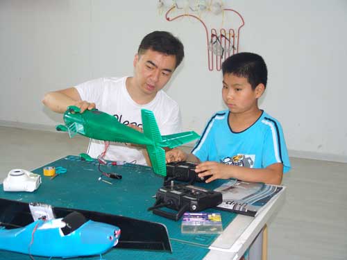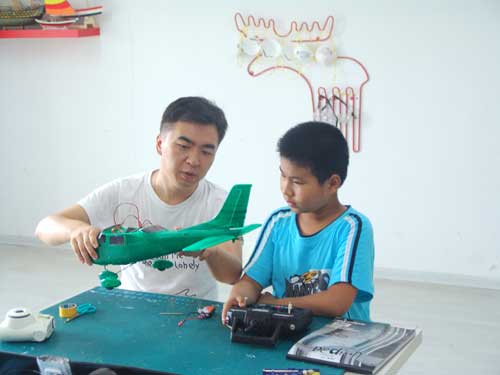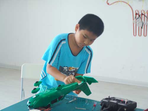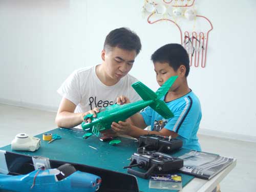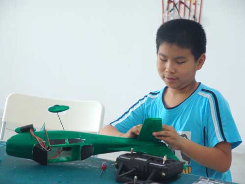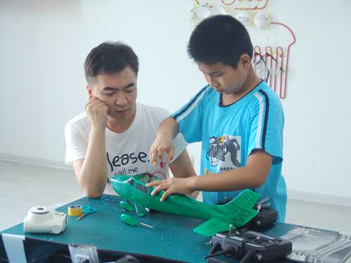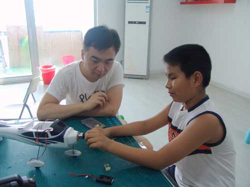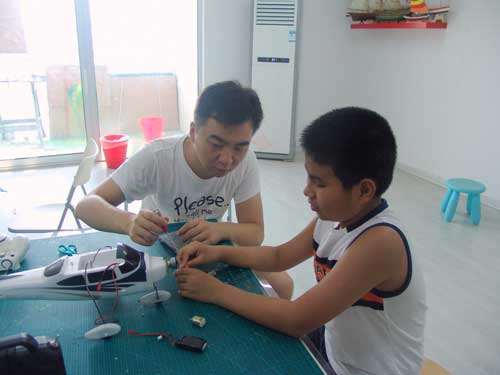 豆豆是上周加入我们的航模课程的,最近做了一次眼睛测试,不能长时间用眼过度,不能看太精密的小东西,不能对强光,所以经常看他带着墨镜工作,偶尔还会找这个理由偷懒。前三天的工作,他都是第一个到的,从一开始觉得模型飞机跟玩具飞机一样简单的不屑,到后来深深震撼和喜欢,我深刻体会到只要你真正投入认真的工作,一定会发现让他发现它的魅力,没有小孩不喜欢的东西,只在于你花费多少心思去真正吸引他。